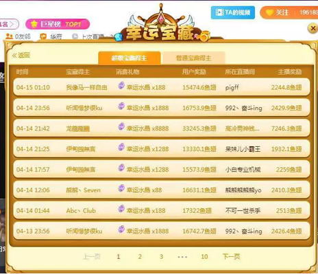一位网友随机统计半个月内开奖约80次,兑换奖金400万元,据此估算,每月兑换奖金达800万元。中过两次大奖以上用户总共中奖次数达68次,占比85%。其中最多有两名用户中奖8次,占比20%,用户参与率的集中性极高。主播的参与度集中性也极高,以“高冷男神钱小佳”主播为代表,总共开奖17次,其中17名主播都开过“超级快递”大奖,两次以上的高达75次,占比93.75%。