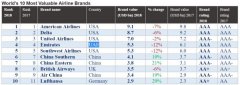 英国品牌顾问公司品牌金融26日发布的2018全球航空品牌价值报告显示,中国航空品牌价值不断攀升,2018年共有三家航空公司进入全球品牌排名前十。中国南方航空、东...